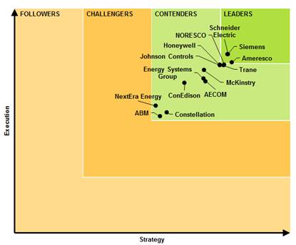 节能服务公司通过使用合同能源管理(EPC)或节能绩效合同(ESPC)融资结构,帮助无法考虑或承担资本密集型项目的细分市场获得能效技术和服务。施耐德电气是这一市场的先行者。根据该报告,施耐德电气“致力于智能系统和控制、跨企业集成、分布式发电,拥有市场领先的控制系统并覆盖全球”。此外,这些优势“与高效建筑和节能绩效合同市场当前的发展趋势完全一致,有助于施耐德电气为这两个市场的客户实现深度节能。”